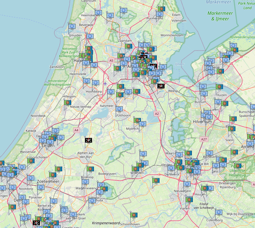 Now this is where the real fun starts. If you look at the image you'll notice a few pirate flags indicating the location of a possible hacker. These hackers have been identified by putting a decoy server online with only one task: Open a port and wait for a hacker to connect. I was surprised how many hack attempts were done so quickly. All my decoy does is log the IP address and compare this to the GPS locations and website IP's that have been gathered. If a location or IP is matched this means that either a hosting company is allowing one of it's users to do bad things or the actual website has been compromised. With this information I can actively try to get in touch with the one that should take action.